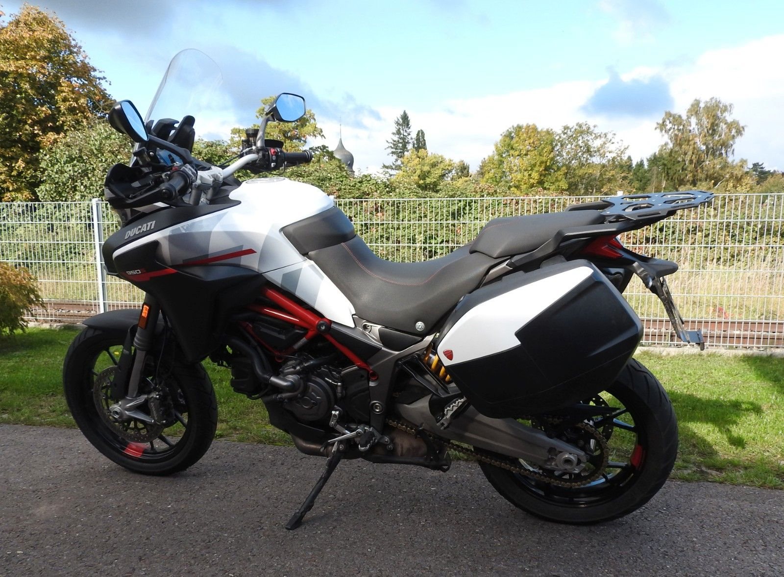 Zum Verkauf steht eine Ducati Multistrada 950S Touring (weiß) aus erster Hand, mit einer Gesamtfahrleistung von 26866 Km. Das Fahrzeug ist Scheckheft gepflegt und unfallfrei.