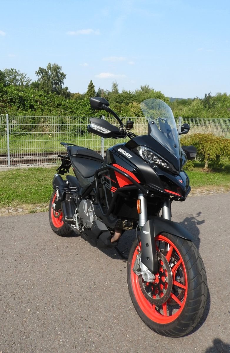 SerienausstattungRiding Modes, Power Modes, Kurven-ABS, Ducati Traction Control (DTC), Ducati Cornering Light (DCL), Ducati Brake Light, Vehicle Hold Control (VHC), Ducati Skyhook Suspension Evo, Ducati Quick Shift Up/Down, Tempomat, Hands-free, beleuchtete Schalter, 5-Zoll-TFT-Farbdisplay, Voll-LED-Scheinwerfer, automatische Blinkerrückstellung.