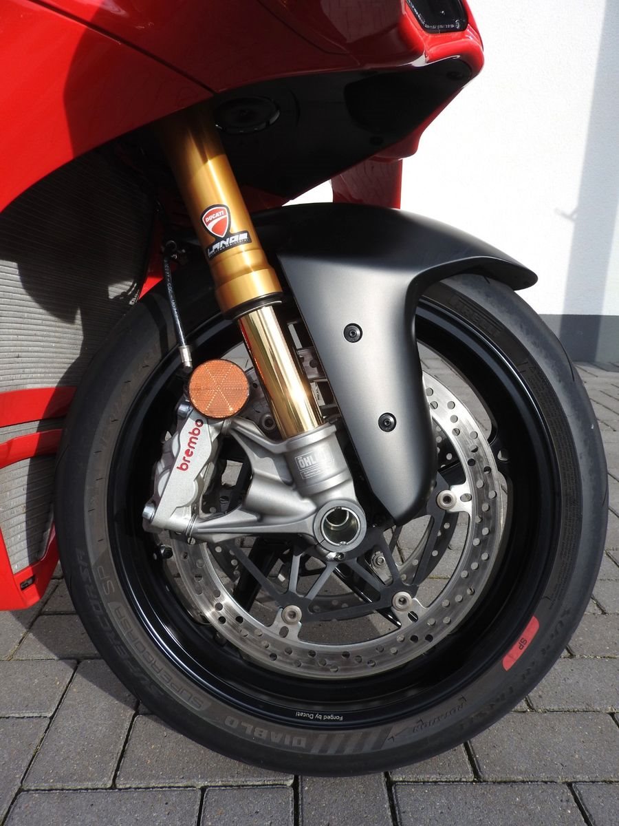 Serienausstattung:Ducati Power Launch (DPL) DVO, Ducati Quick Shift (DQS) Up/Down 2.0, Voll-LED-Scheinwerfer mit Daytime Running Light (DRL), Ducati Electronic Suspension (DES) 3.0 mit Öhlins Smart EC 3.0, Lithium-Ionen-Batterie, Schnellanwahltasten, Pit Limiter, automatische Blinkerrückstellung, Schmiederäder.