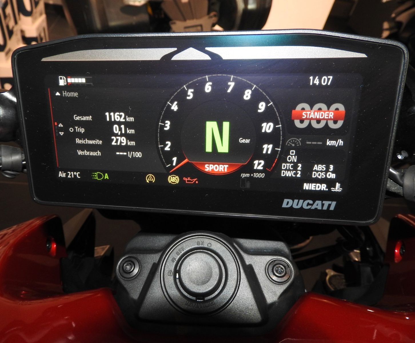 Serienausstattung: Ducati Quick Shift (DQS) 2.0, Ducati Power Launch (DPL), Tempomat, Hands-Free-System, 6,9-Zoll-TFT-Farbdisplay, Ducati Multimedia System (DMS), beleuchtete Bedienelemente, Voll-LED-Scheinwerfer, dynamische Blinker.