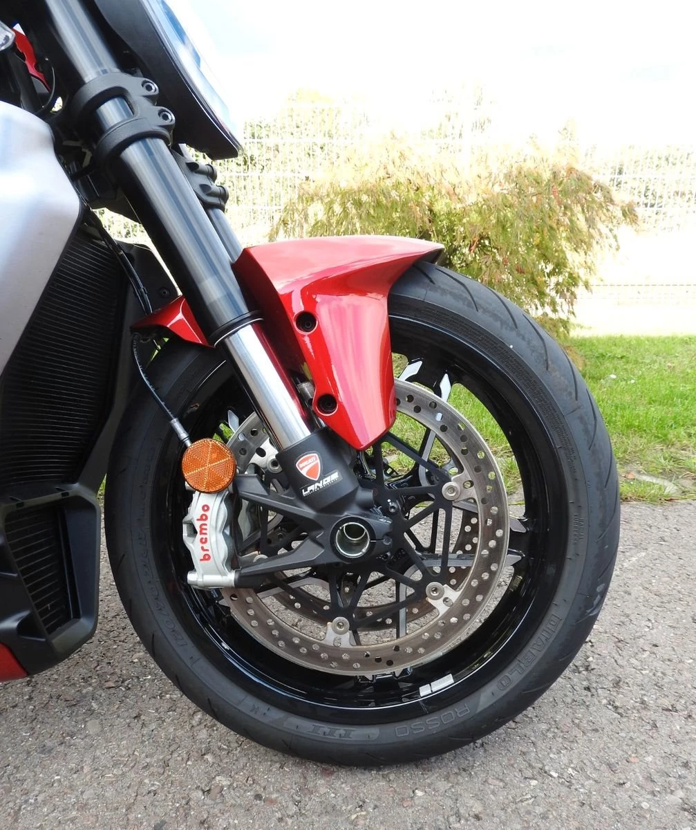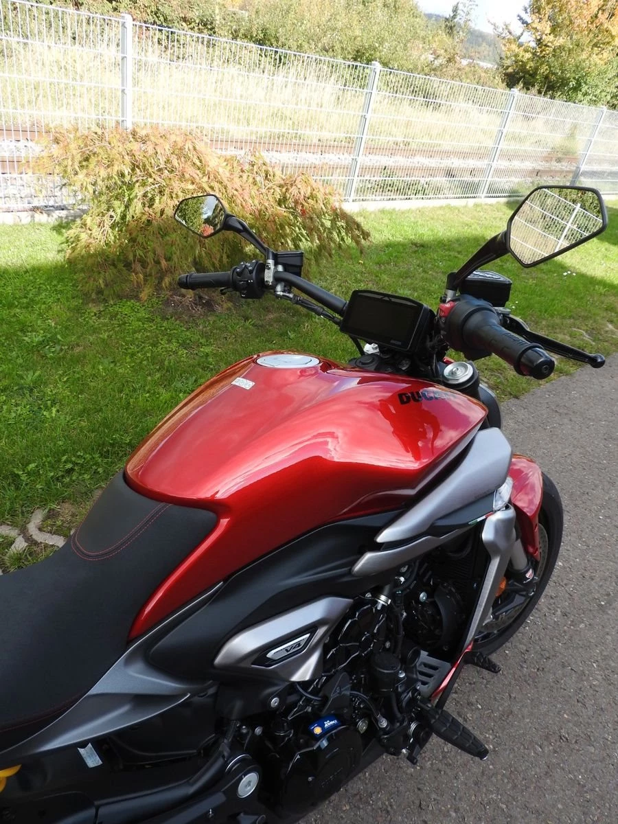 Serienausstattung: Ducati Quick Shift (DQS) 2.0, Ducati Power Launch (DPL), Tempomat, Hands-Free-System, 6,9-Zoll-TFT-Farbdisplay, Ducati Multimedia System (DMS), beleuchtete Bedienelemente, Voll-LED-Scheinwerfer, dynamische Blinker.