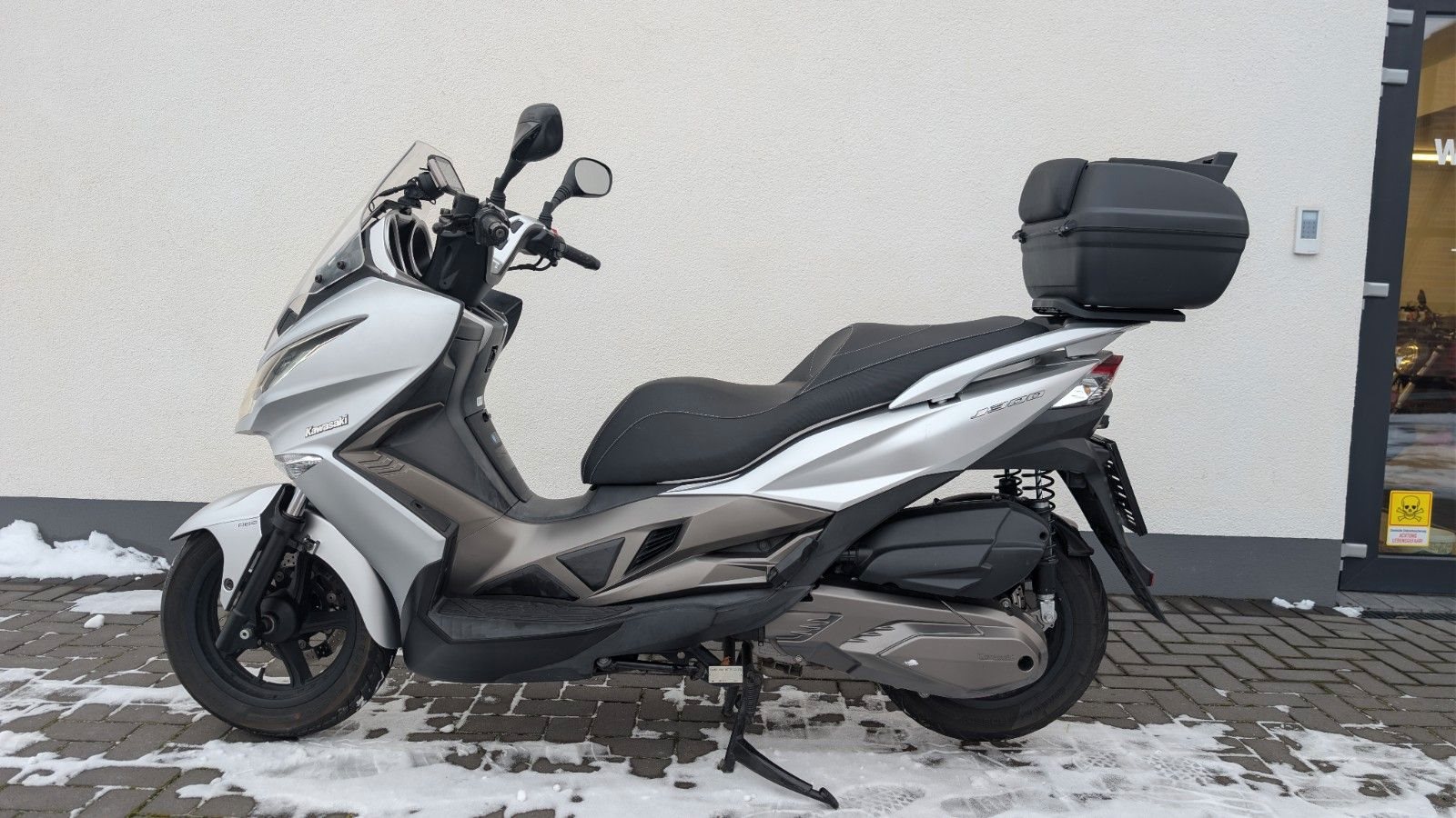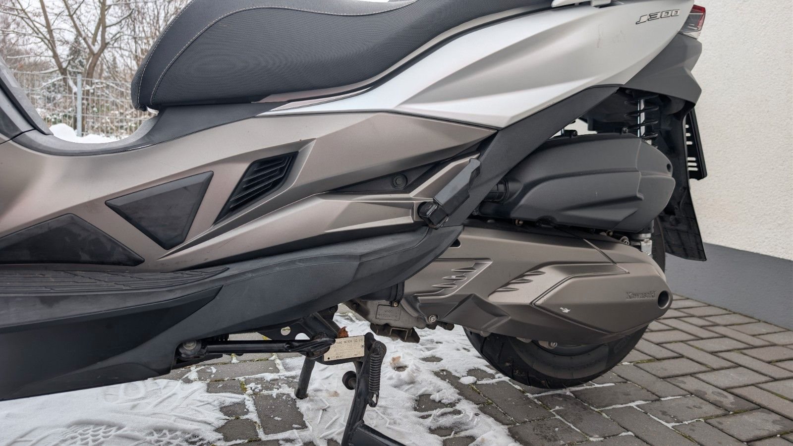 Der Kawasaki J300 verfügt über eine ausgewachsene Statur und kann es optisch sogar mit Großrollern aus der 500+ Klasse aufnehmen. Kawasaki ist bekannt für seine aggressiven Designs und macht beim Thema Roller keine Ausnahme. Im engen Stadtgedränge allerdings ist man mit schlankeren Modellen besser dran, dafür punktet der J300 mit Stabilität und bietet seinen Reitern viel Platz und Komfort. Die Fahrleistungen sind trotz seines hohen Gewichts durchaus sportlich.