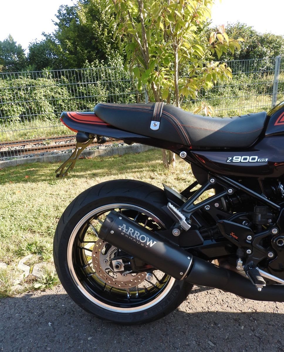 Als Zubehör runden ein Arrow-Endschalldämpfer, kleine Blinker, kurzer Kennzeichenhalter,